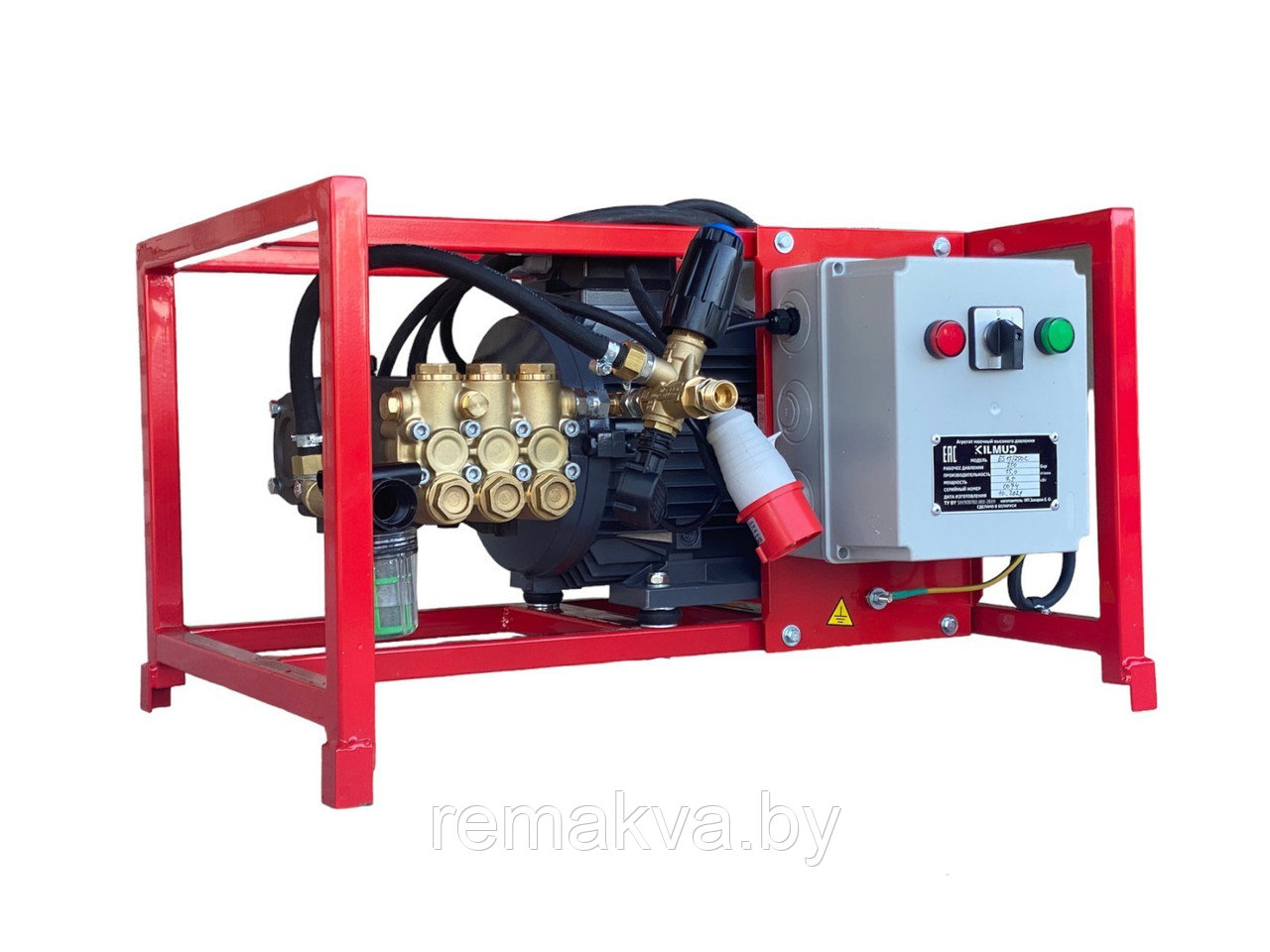 Эта модель оснащается мощным низкооборотистым (1450об/мин) двигателем 7,5 КВт, который позволяет АВД достигать максимального давления 250 атм с производительностью 900 л/час (15 л/мин). Благодаря насосу из кованой латуни и редуктору Кривошипного типа (КШМ) с полностью керамическими поршнями (установлены керамические втулки) , мойки высокого давления KILMUD (Килмуд) значительно превосходят по качеству и надежности многих немецких и итальянских конкурентов и предназначены для Активной работы в самых суровых условия эксплуатации.